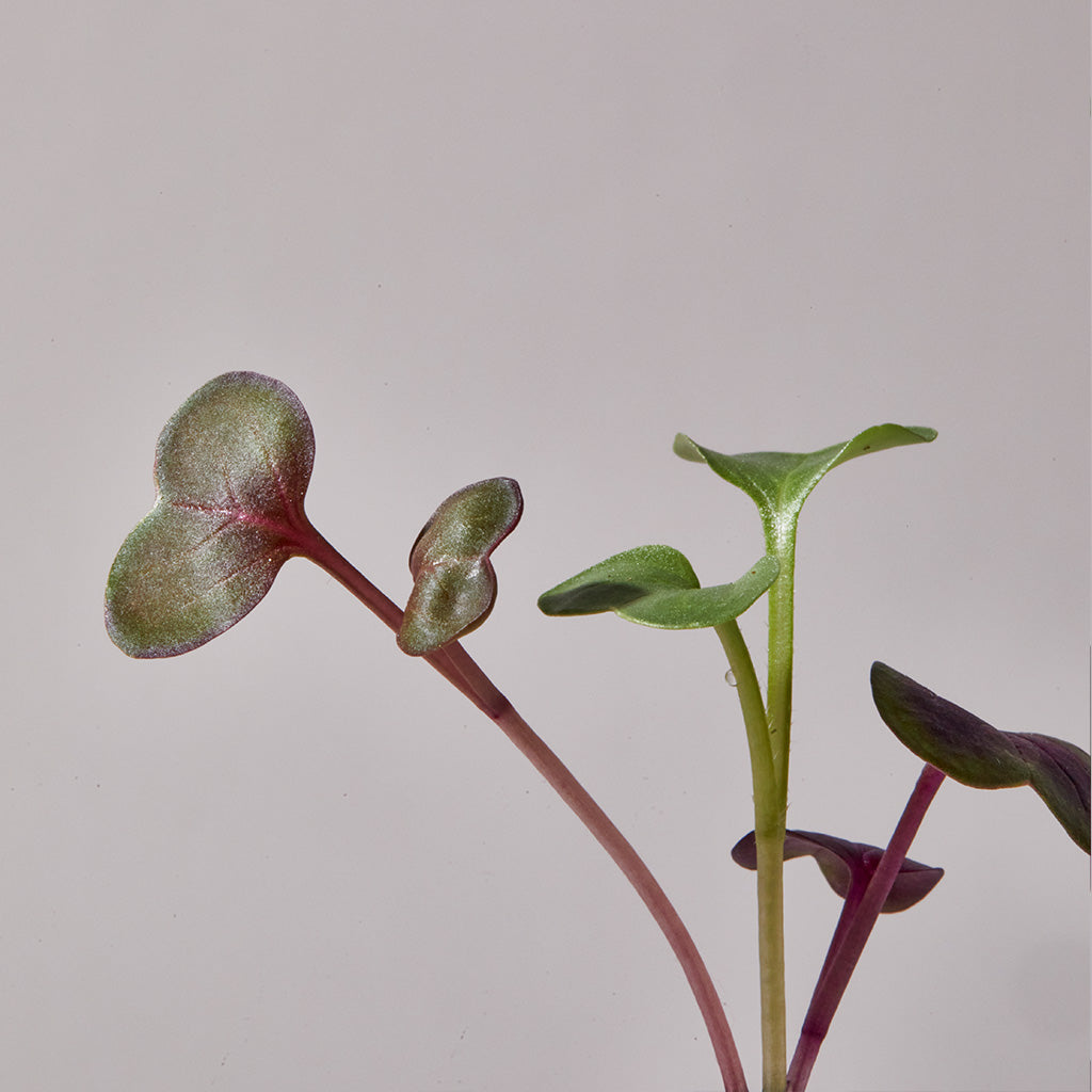 A show stopper of a green in both taste and appearance, micro radish holds its own in any dish. Fermented in kimchi, folded into an omelet or chopped into a chimichurri, radish adds a peppery note that compliments whatever flavors you surround it with.